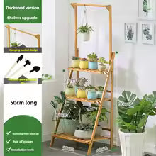 Crea un rincón verde y elegante en tu hogar con este organizador de macetas plegable y móvil. Ideal para balcones, patios o interiores luminosos.
