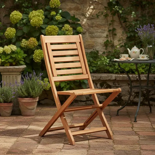 Conjunto Mesa ARANDÚ 75×75 + 4 Sillas Plegables de Madera Premium