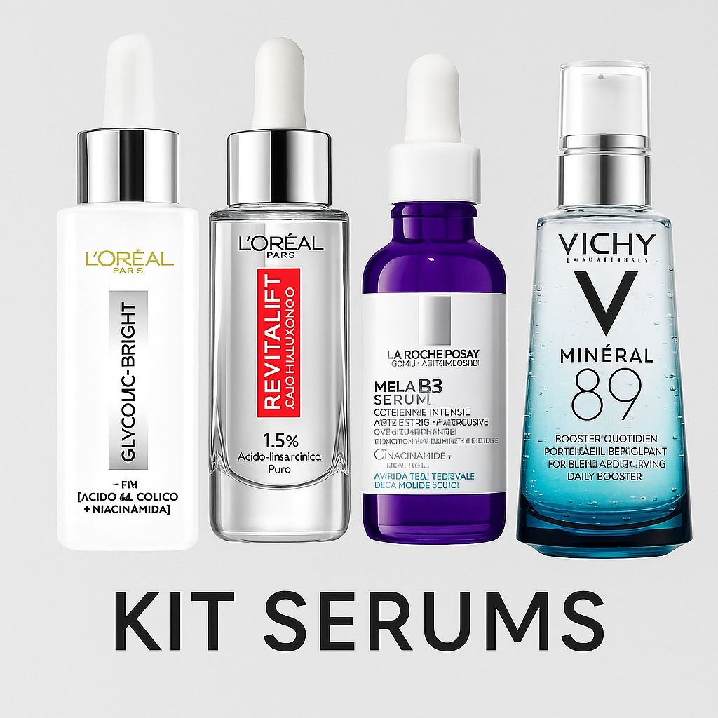 Cuatro sérums esenciales reunidos en un kit exclusivo para potenciar luminosidad, firmeza e hidratación de tu piel.